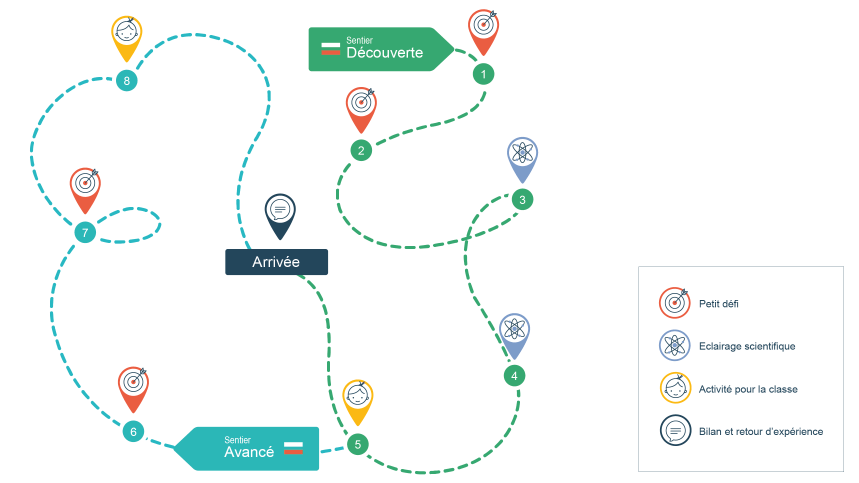 Nous avons appelé notre parcours une « randonnée dans l’attention ». Vous pouvez consulter ici la « carte du parcours », en attendant de visualiser les vidéos, lire les textes d’approfondissement scientifique, vivre les mini-mises en situation ou mettre en place les activités de classe qui le composent.