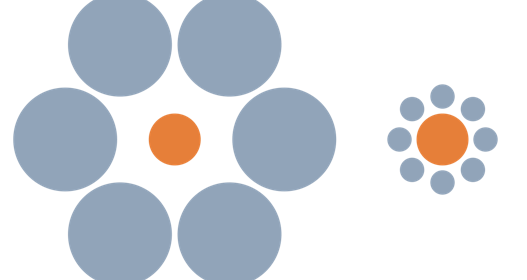 Les deux cercles orange ont-ils la même dimension? Le cercle droit vous paraît plus grand que le gauche, n’est-ce pas ? Mais si vous les mesurez, vous constaterez qu’ils ont la même taille. C’est une illusion perceptive. Les illusions, ces phénomènes surprenants, sont utiles aux scientifiques : ils les considèrent comme des fenêtres ouvertes sur notre cerveau, révélatrices de son fonctionnement. Les illusions, certains comportements et certaines pathologies nous permettent de comprendre comment les réseaux cérébraux traitent l’information. ! (…)